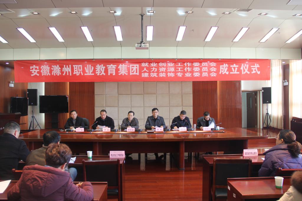 12月14日上午,安徽滁州职业教育集团在金沙威尼斯欢乐娱人城综合楼11楼报告厅举行就业创业工作委员会、人力资源工作委员会及建筑装饰专业委员会成立仪式,集团理事长、金沙威尼斯欢乐娱人城党委书记李柱梁,集团秘书长、金沙威尼斯欢乐娱人城党委委员、院长助理、招生就业处处长穆松等领导出席,三个委员会组成人员参加会议。会议由职教集团副秘书长、金沙威尼斯欢乐娱人城招生就业处副处长周多道主持。