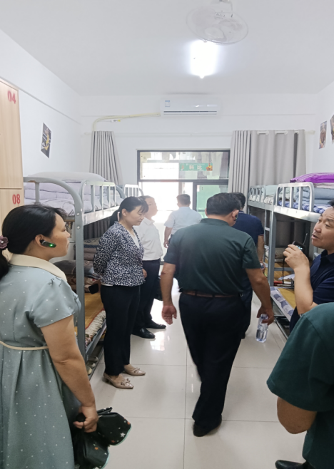 王莉与在场的技能大赛辅导老师进行了互动交流,得知阜阳职业技术学校在培养学生技能方面取得显著成绩时,对老师们的辛勤付出给予了肯定。在学生宿舍,对学生整齐的床铺和物品摆放提出了表扬,并且拿手机记录下来。