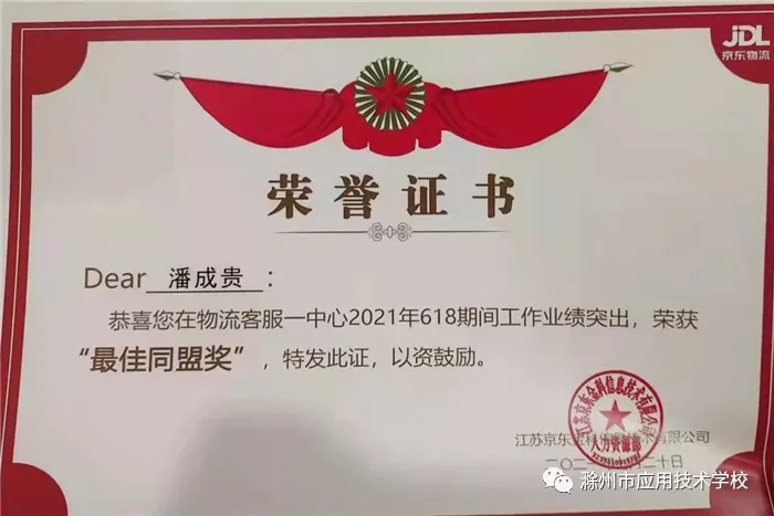 个人荣誉:京东客服体系优秀学员、 京东客服TL、连续两次获得全国院校PK前三名,京东618最佳同盟奖。