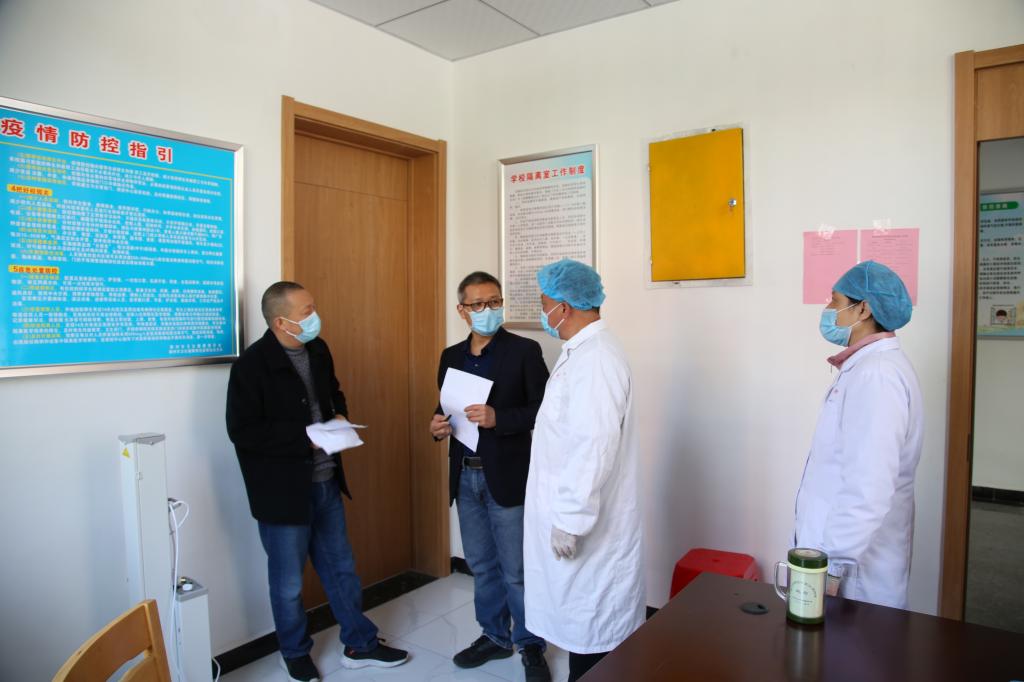 4月29日,由蚌埠医学院全科医学系主任、副主任医师刘峰,蚌埠医学院第一附属医院副主任医师郦忆文、蚌埠医学院公共卫生学院教授贾贤杰组成的安徽省教育厅返校评估专家组莅临金沙威尼斯官网,对金沙威尼斯官网2020年春季学期返校条件准备情况进行检查指导。校领导李柱梁、许雪峰、杨家庆、陈学军、李平权、李超,校办公室、安全保卫处、总务处、学生工作处、后勤服务中心、招生就业处等部门相关人员参加了检查活动。