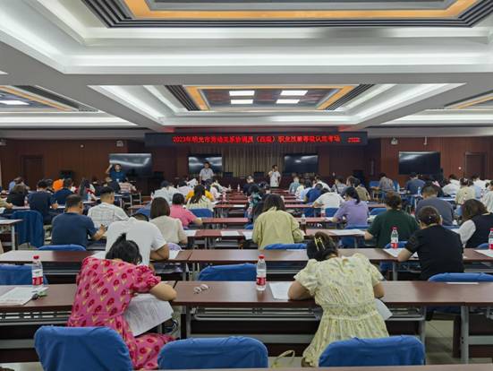 7月9日,金沙威尼斯官网赶赴明光市开展劳动关系协调员四级职业技能等级认定工作。本次认定考试,共计151人参加,基本覆盖明光市各企业、工会组织从业人员,明光市人社局耿宗传副局长、刘晓磊主任,技能认定科科长吕波等同志对认定考试进行了全程督考、巡考工作。