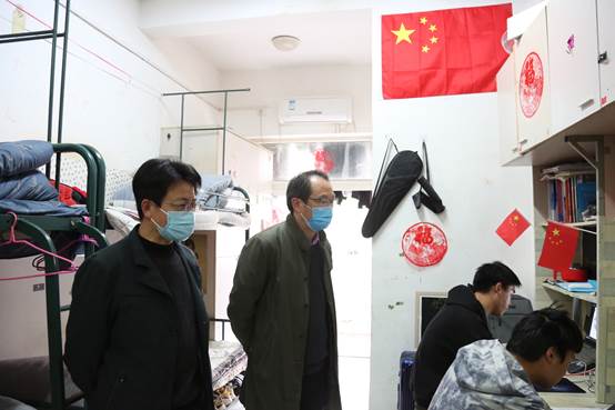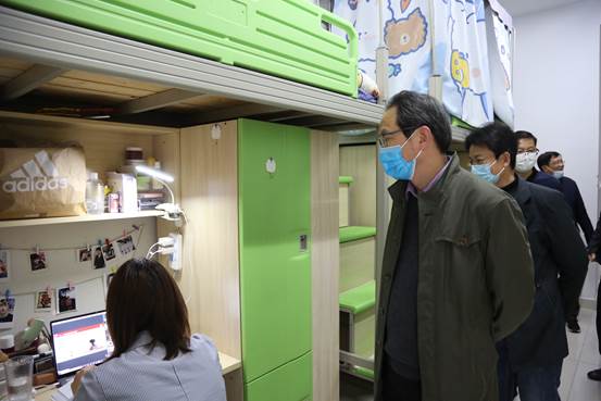 4月5日上午8点,校党委副书记、校长许雪峰,校党委委员、副校长苏有良一行先后走进信息工程学院、机械与汽车工程学院、互联网学院学生宿舍,实地查看学生线上学习情况、网络条件、宿舍防疫卫生状况,与部分课间休息的同学亲切交谈,详细了解网络流畅性、教师上课质量、网课学习成效等。