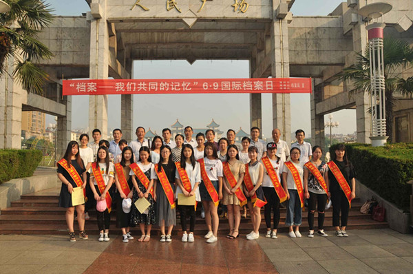 为配合市档案局今年的国际档案日活动,我院2015级商务文秘班同学在潘富莲老师的组织和带领下,一大早齐集市人民广场,为今年的档案宣传活动提供现场志愿服务,向滁州市民传播和讲解与档案有关的知识。