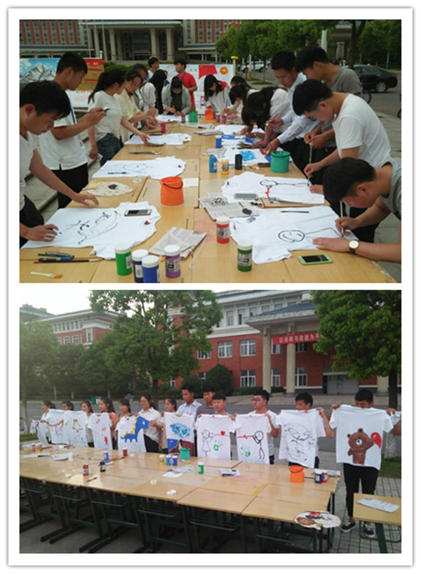 为了丰富同学们的校园文化生活,培养同学们的创新意识,2017年5月24日下午,金沙威尼斯欢乐娱人城传媒系在喷泉广场举办了“校园彩绘T恤大赛”活动,经济贸易系学生积极参加了这次活动。