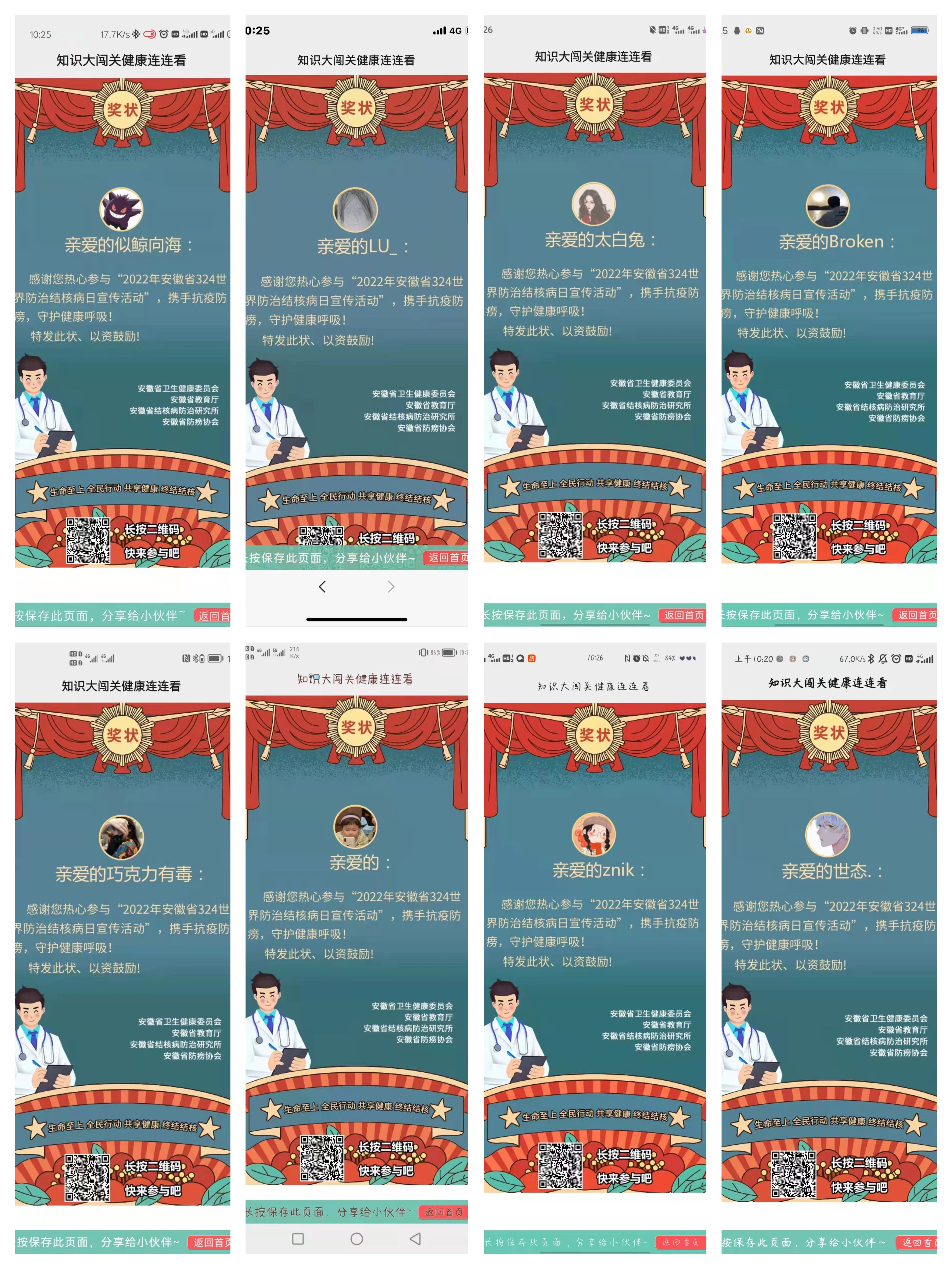 结核病是慢性传染病,目前有三分之一的世界人口感染了结核分支杆菌,每年有 800一1000万结核病患者,其中死亡180万人。此次线上公益答题活动,同学们对结核病有了进一步的了解,促进结核病防治知识的普及,倡导人们注意环境卫生,养成良好的卫生习惯,不随地吐痰,保持室内通风,共同营造良好的生活环境。