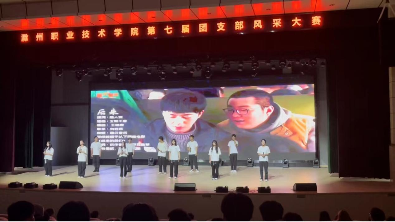 此次大赛分为知识竞赛、风采展示、才艺展示三个环节。风采展示环节,21级城轨5班团支书刘俊伟通过PPT形式,介绍了团支部建设、团支部生活以及团支部活动等,呈现出积极向上,团结有爱的集体。才艺展示,21级城轨5班演唱歌曲《后来》,赢得阵阵掌声。