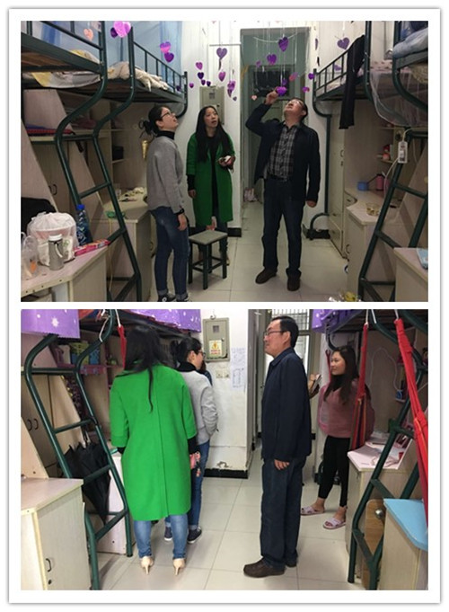4月13日下午15:00,经贸系学生会部分成员对三号宿舍楼和四号宿舍楼进行了检查。经贸系书记李有志、贸系老师李晓辕及团总支书记何文婧老师参加了此次活动。
