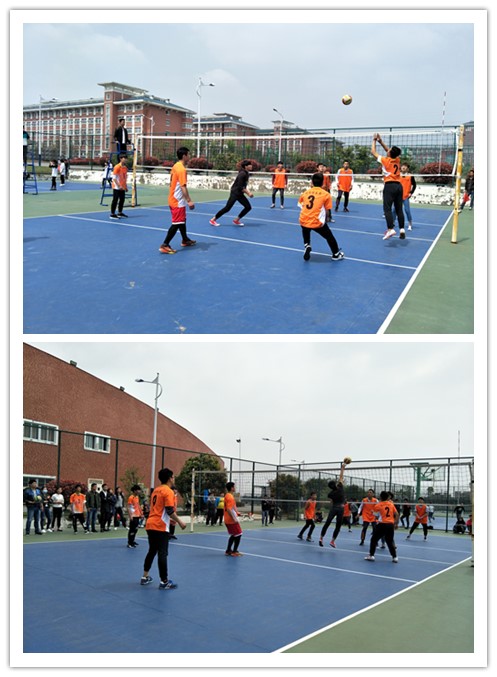 2017年4月11日中午12:20,金沙威尼斯欢乐娱人城于排球场举办男子排球联赛,经济贸易系积极参加此次活动,本场比赛经济贸易系对战机电工程系。