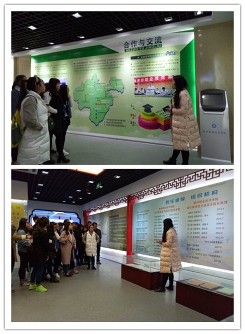 何文婧老师带我们领略了滁职的历史沿革、办学理念以及学校所获得的各种荣誉。校展览馆以图文并茂的信息和实物,展示了学校各个方面建设的精神风貌和杰出成就,对学校人文、地理、教学、科研及对外交流等方面都有详细的阐释,展现了各个时期的办学成果,以及各种名人事迹,激励了同学们要加强自身学习。