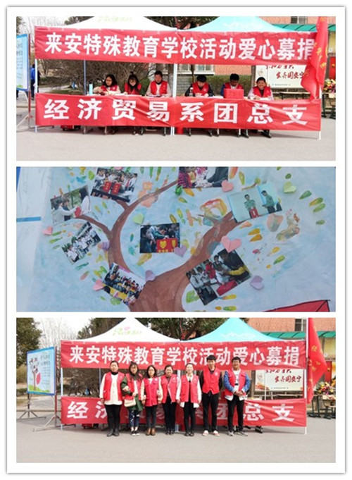 为了给来安特殊教育学校的孩子们奉献一份爱心,送去一份温暖,2017年3月6日,经贸系团总支在女生宿舍一号楼下开展“赴来安特殊教育学校爱心募捐活动”。