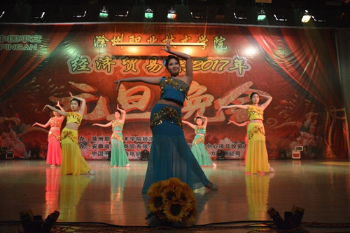 晚会在开场舞《春节序曲》中拉开了序幕,温馨的祝福、飘逸的动作、欢乐的节拍赢得同学们的阵阵掌声。随后晚会进程缓缓拉开,歌曲《李香兰》给我们带来一种听觉的享受,接下来琅琊华梦汉服带来的《汉古印象》和经贸系老师们舞蹈的《红颜劫》让在场同学们眼前一亮,其舞步轻盈、飘逸、柔美,让同学们纷纷赞叹。动感十足的现代舞蹈、风趣幽默的小品、眼花缭乱的现代舞、古典舞、配乐诗朗诵、帅气的走秀,一次次使现场气氛达到了高潮。舞蹈《异域风情》时而婉约,时而奔放,将身姿融入节拍中,带来一场视觉盛宴,感慨万事,随后由经济贸易系教师们带来的合唱《年轻的朋友来相会》、《我们走在大路上》让同学们感受到经贸系教师们的多才多艺,《爱在蓝天》由经贸系第一届专业中航国铁班展示,带给我们一种别样的风采,舞蹈《映山红》以其优美的旋律、深情的歌词,表达了对红军的崇拜和敬仰之情,震耳欲聋的掌声、喝彩声与歌声汇成了一篇青春飞扬,激昂风采的乐章,最后,晚会在《美丽中国》的舞蹈中徐徐落下帷幕。