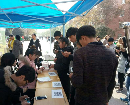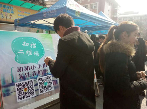 活动通过在校大学生扫描团总支、学生会和三福的二维码的方式进行宣传并赠送小礼品。活动一开始,同学们便积极踊跃的参加到活动中,向工作人员询问问题,了解此次活动开办的目的,了解经贸系团总支和学生会的各项职能,场面活跃。