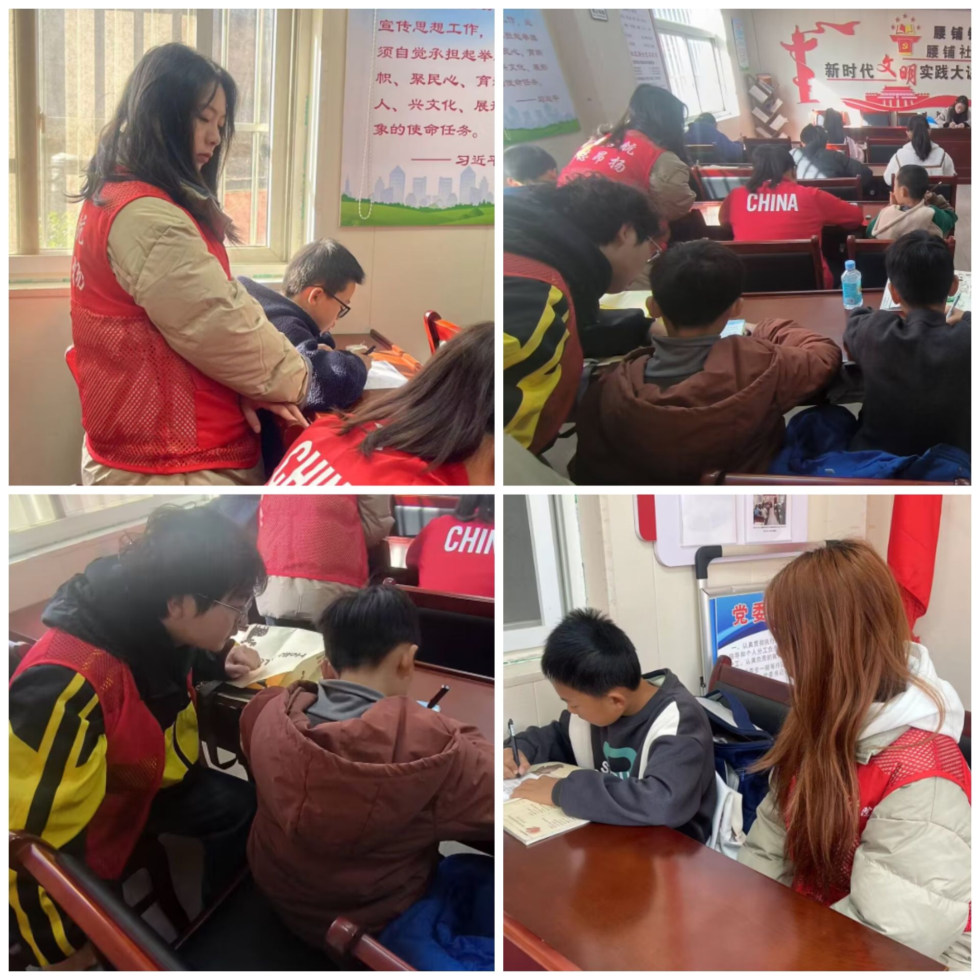 志愿者们满怀热情地来到了腰铺社区,一走进孩子们的学习教室,就看见孩子们欢快的笑容,随后志愿者们放下背包立刻投入到辅导孩子们的学习当中,与孩子们进行学习上的沟通与交流,耐心听取孩子们问题,并一一细心做出解答,并鼓励孩子们积极反映学习上的困难和问题,帮助和培养他们养成良好的学习习惯。