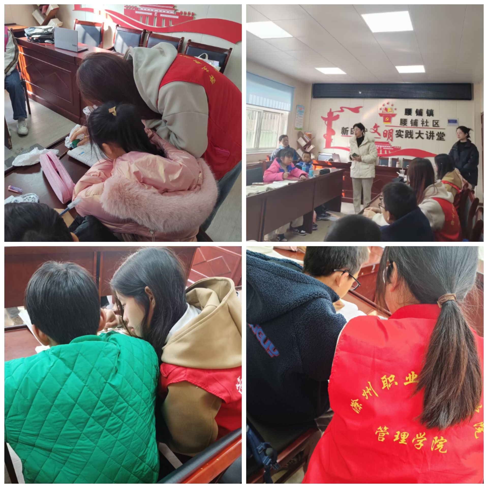 2023年11月25日,金沙威尼斯欢乐娱人城管理学院团总支志愿者团队在滁州市南谯区腰铺镇腰铺社区参加志愿活动,对孩子们的学习进行学习辅导。