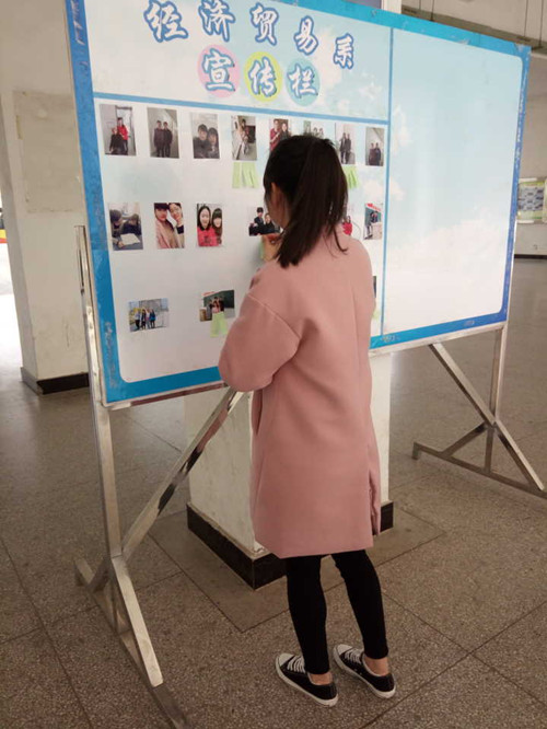 为了丰富同学们的大学校园生活。2016年3月22日中午12点,经济贸易系团总支、学生会积极开展第三届温馨笑脸之“我心中你最美的你”活动。