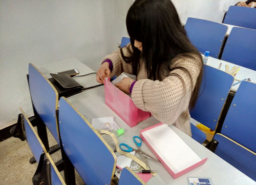 活动过程中,同学们利用一些废弃的纸盒、纸杯、木棒等制作出一个个实用、环保的作品。经过激烈的角逐,15级会计8班丁宁获得一等奖,15级会计6班韩娜获得二等奖,15级会计5班王雪获得三等奖,15级工商企业管理班王媛媛获得最佳创意奖。