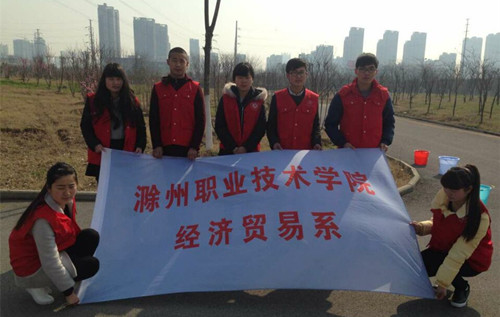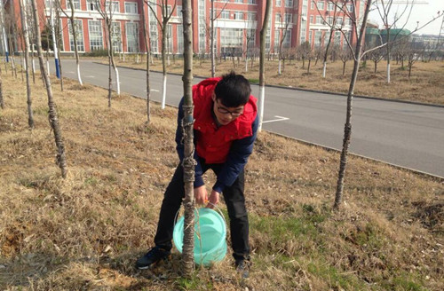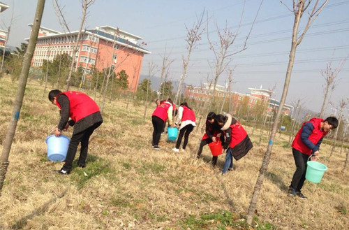 为增强“绿色和谐,你我同盟”这一宗旨2016年3月12日下午,经济贸易系团总支、学生会积极组织同学们积极开展植树节“保护树苗活动。