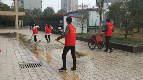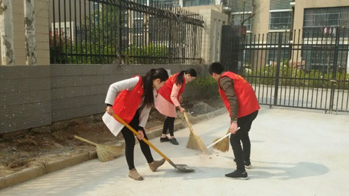 活动过程中,志愿者们分成几个小组,打扫着校园内的每个角落,希望每个角落都变得干净、舒适。