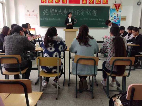 2016年3月8日晚,经济贸易系团总支、学生会举办的第16届大专辩论赛初赛圆满结束。经过激烈的角逐,经贸系2015级会计(3)班、会计(4)班、会计(5)班、会计(8)班、会计(9)班、电子商务(1)班、市场营销(1)班和工商企业管理八个班级成功晋级初赛,在此祝贺他们,并预祝他们在接下来的比赛中再创佳绩。
