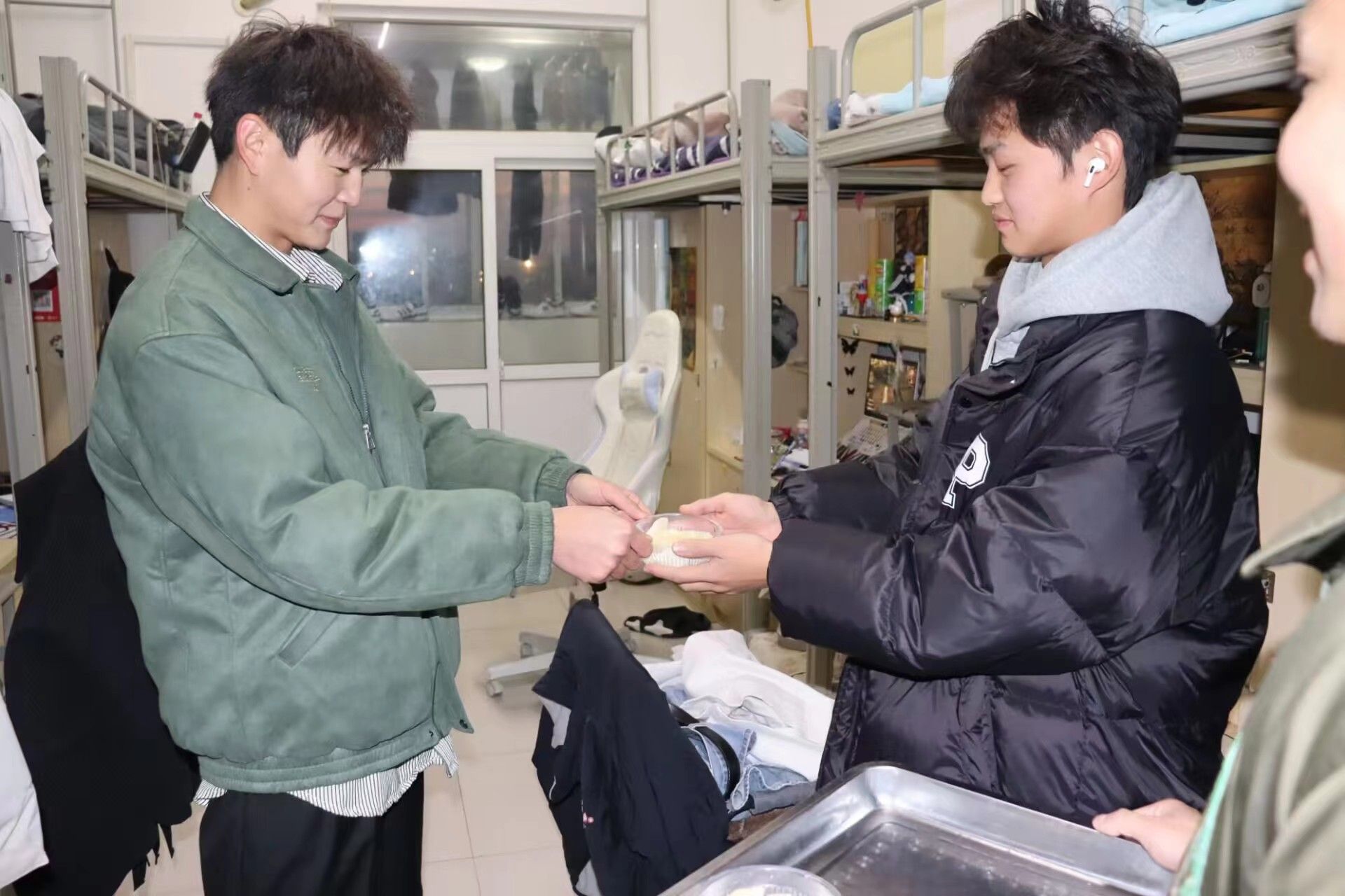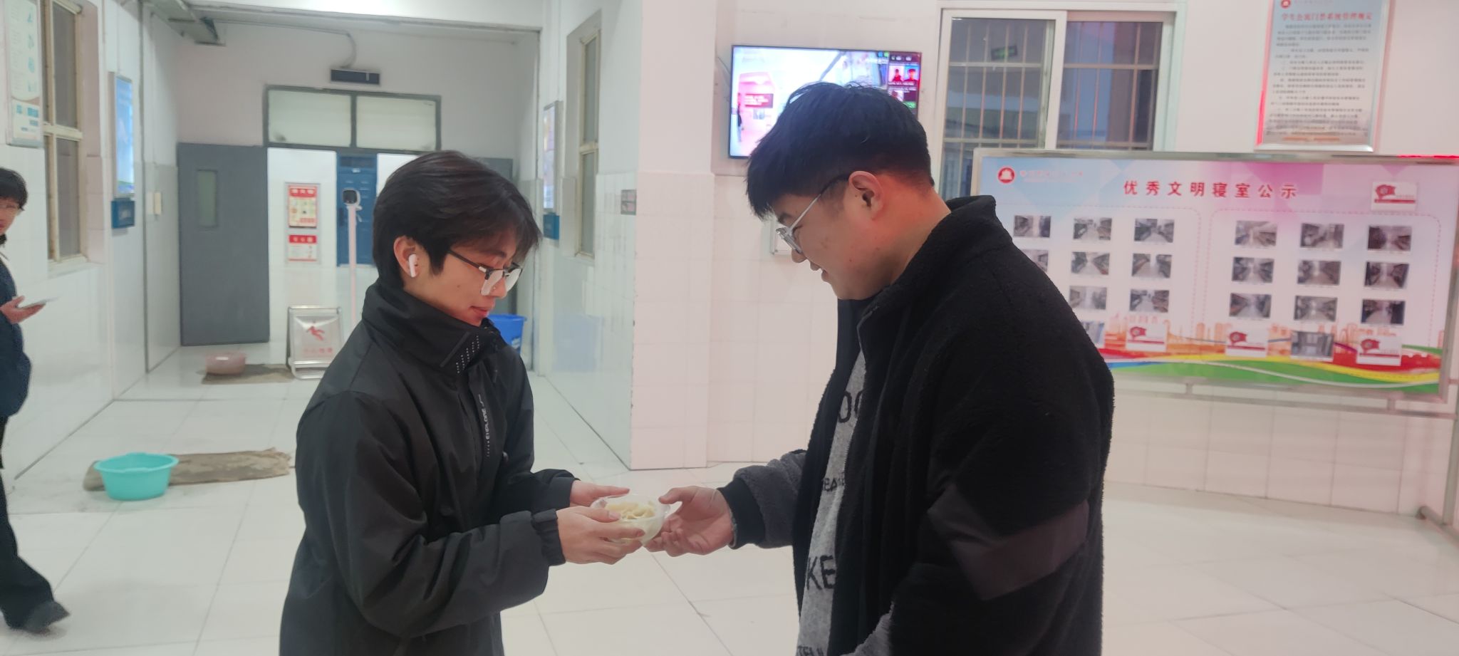 活动当天,志愿者们早早地来到食堂,开始忙碌起来。他们准备好了各种食材,和面、调馅、擀皮、包饺子,每一步都做得非常用心。饺子包好后,学生会干事将饺子送到宿舍九号楼和十二号楼宿管阿姨和学生手中为他们送去了热腾腾的饺子和关怀。