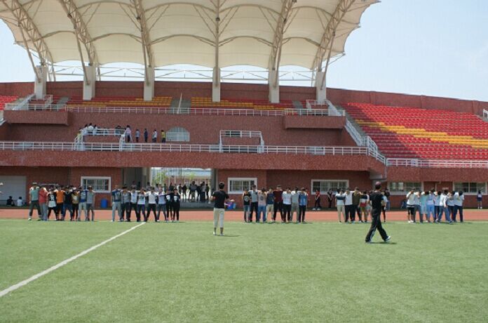 为了丰富同学们的课余生活,提高同学们的身心素质,汽车系学生会5月21日中午在新操场组织学生会各部门开展了“三走”系列活动之六人七足。
