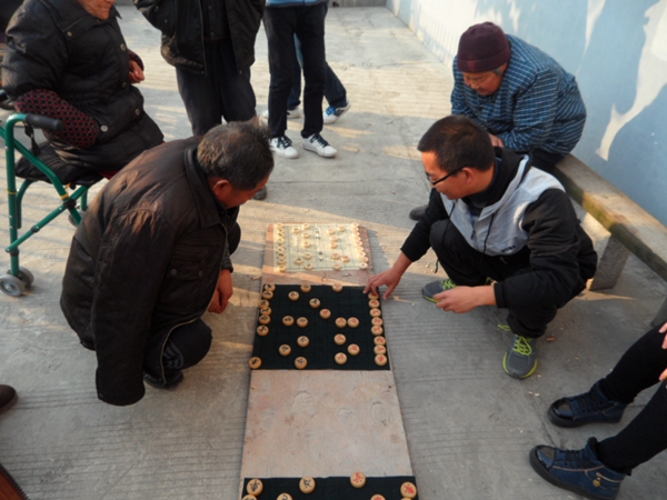 到达目的地后,志愿者们就各自行动起来。有的去陪老人们聊天、打牌、下棋,有的去为老人打扫房间、整理床铺。4点多,大家按照事先约定的时候一起到厨房开始和面、包饺子。