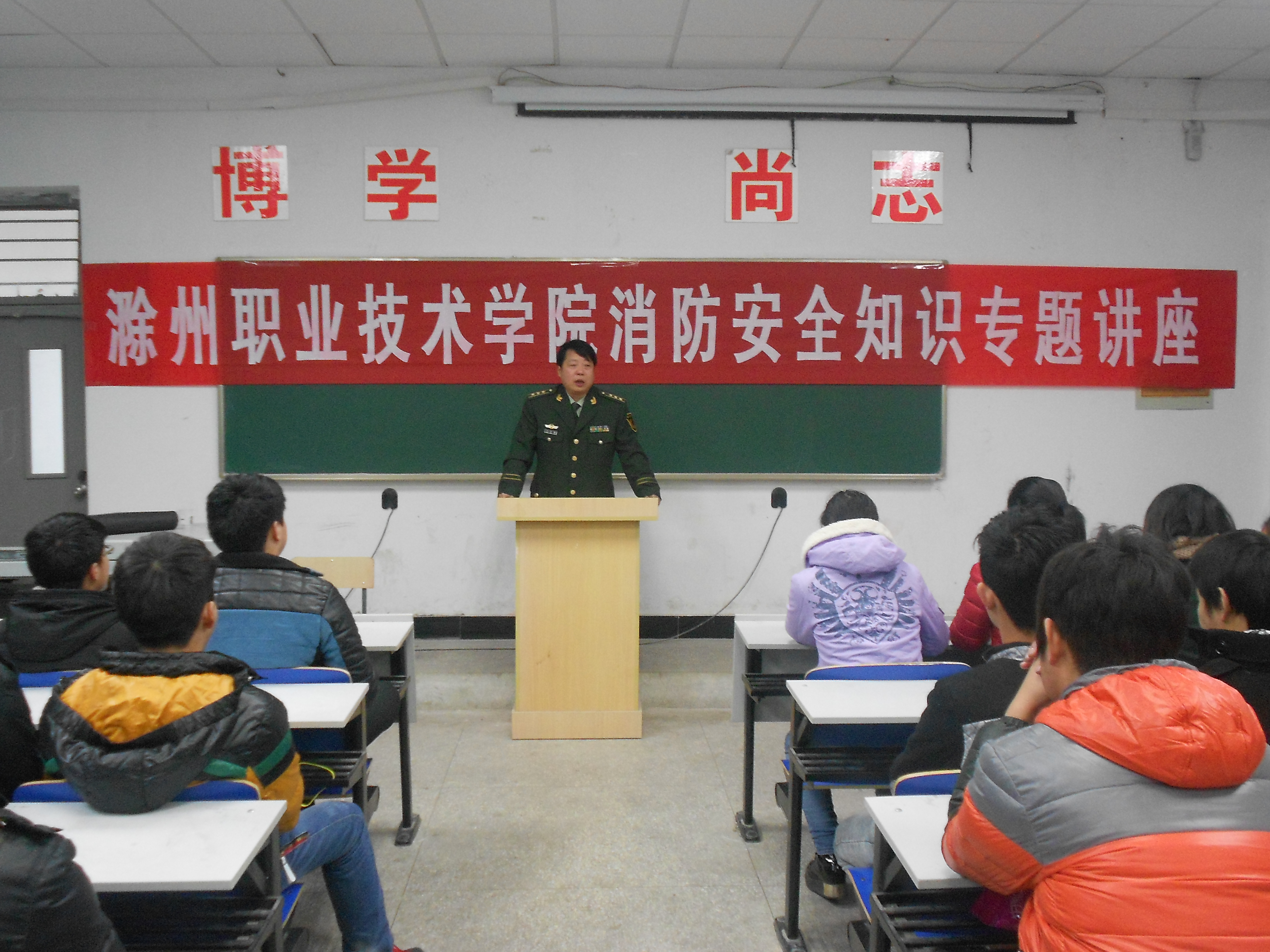 为切实做好消防安全工作,共建平安校园,2014年12月24日下午2:50,一场有关消防安全知识的讲座在5102教师开讲,本次讲座特邀滁州市消防支队宋处长做主讲。机电系学生认真聆听了本次讲座。