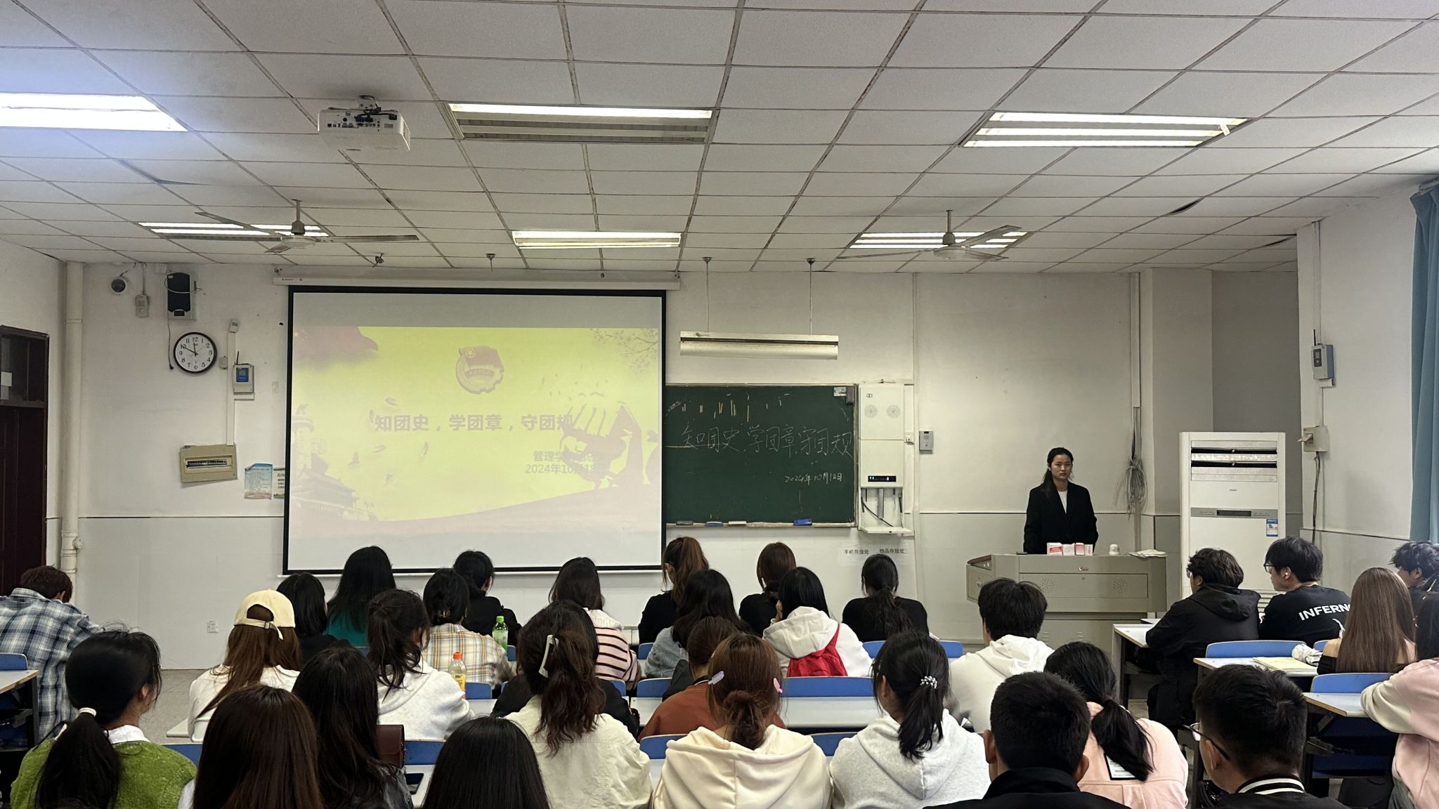 2024年10月16日中午十二点,管理学院团总支在1102教室开展团情学习活动。旨在通过深入学习团情知识,进一步激发广大团员青年的爱国热情,增强他们的责任感和使命感。本次活动由管理学院团总支组织部负责,2024级共青团员积极参加。