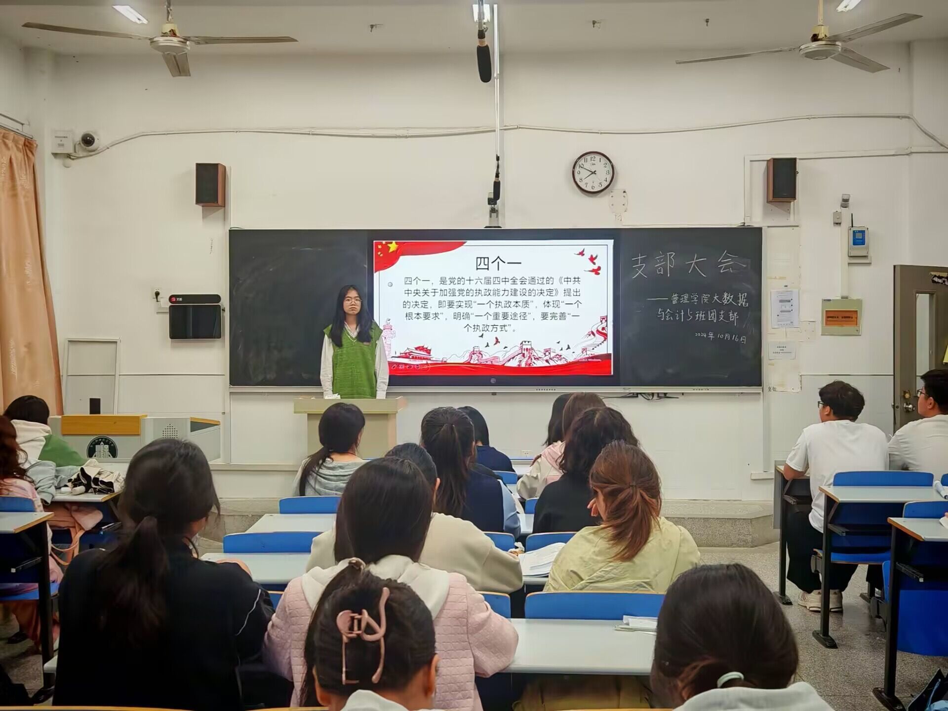 为深入学习贯彻习近平新时代中国特色社会主义思想,做有理想、敢担当、能吃苦、肯奋斗的新时代好青年。管理学院团总支于2024年10月14日在1102教室开展支部大会,2024级各团支部积极参与。