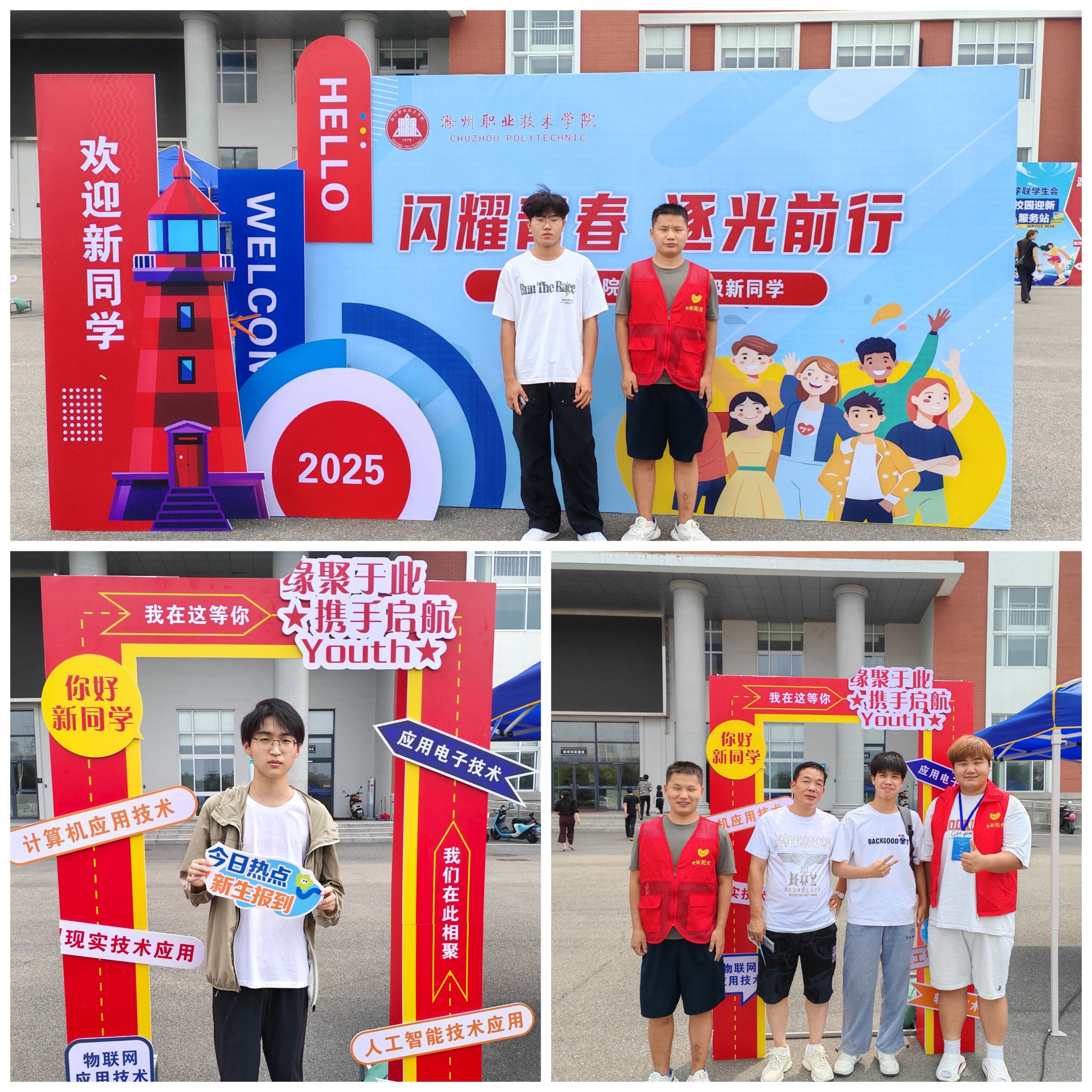 团总支设立的迎新打卡点成为现场亮点,学长学姐用镜头为新生记录下大学生活的第一张照片,定格初入校园的珍贵瞬间。