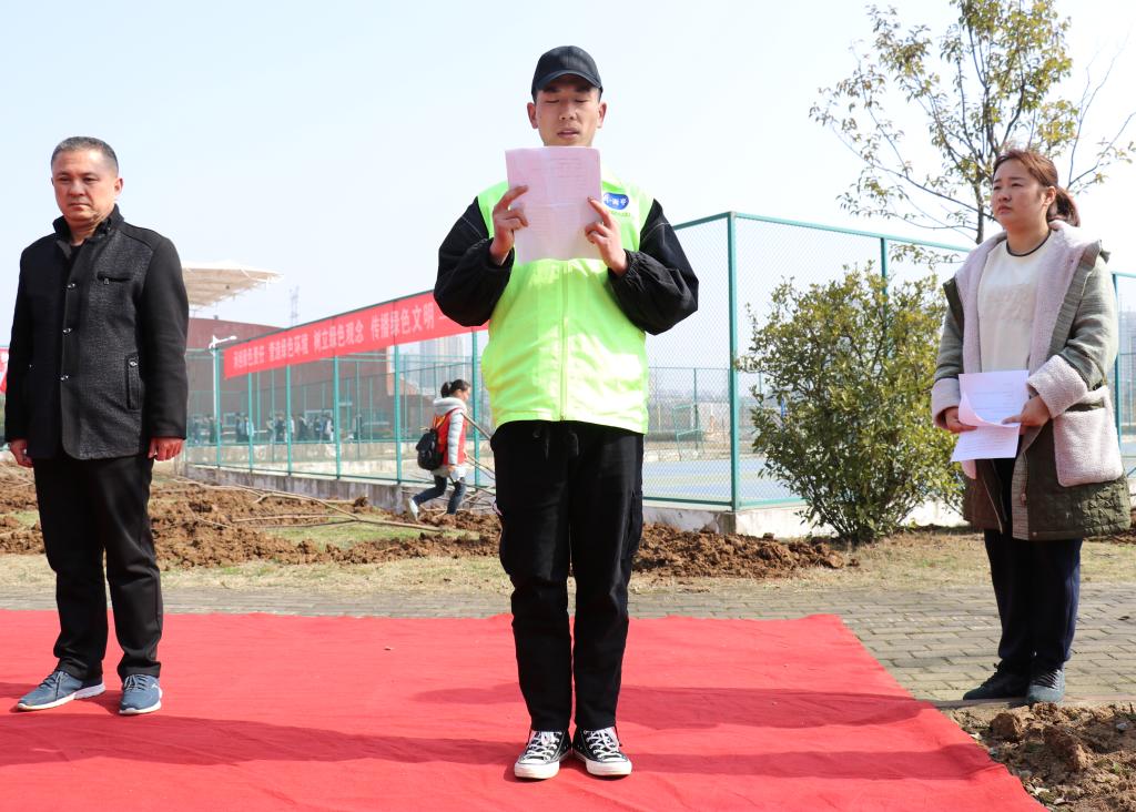 活动开始,“小青亭”志愿者服务队成员李智代表全体志愿者吹响了2019年义务植树的号角,林业局陈主任为志愿者们解读了市树琅琊榆的由来,而刘书记明确指出了今年义务植树的非凡意义所在,并深入浅出地提出了爱绿护绿从我做起的要求,既涨知识又增添了力量。