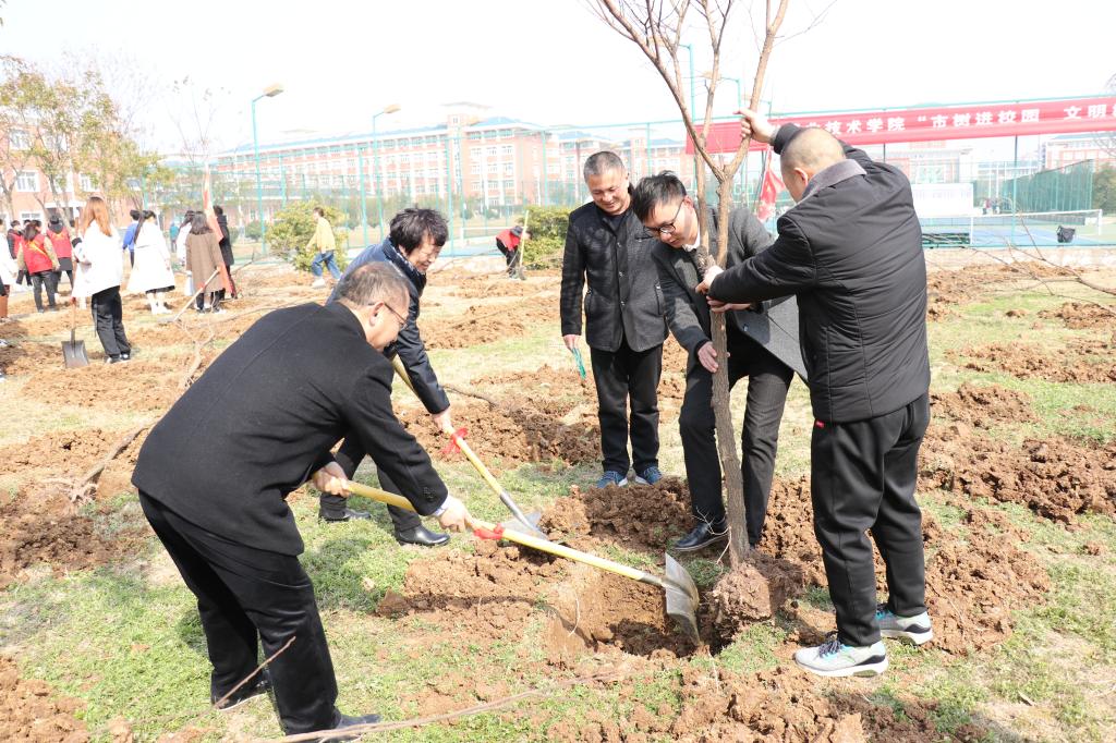 寒雪梅中尽,春风柳上归。2019年3月11日,在举国上下沐浴在两会的徐徐春风之际,金沙威尼斯官网迎来了一年一度的植树节,更迎来了别开生面的“市树进校园·文明树新风”主题义务植树活动。到场领导有:校党委副书记刘树俭、滁州市林业局工会主任陈伟、滁州市林业科学研究所所长董志斌、校后勤公司经理吴杰,本次活动由校团委书记朱婷婷主持。