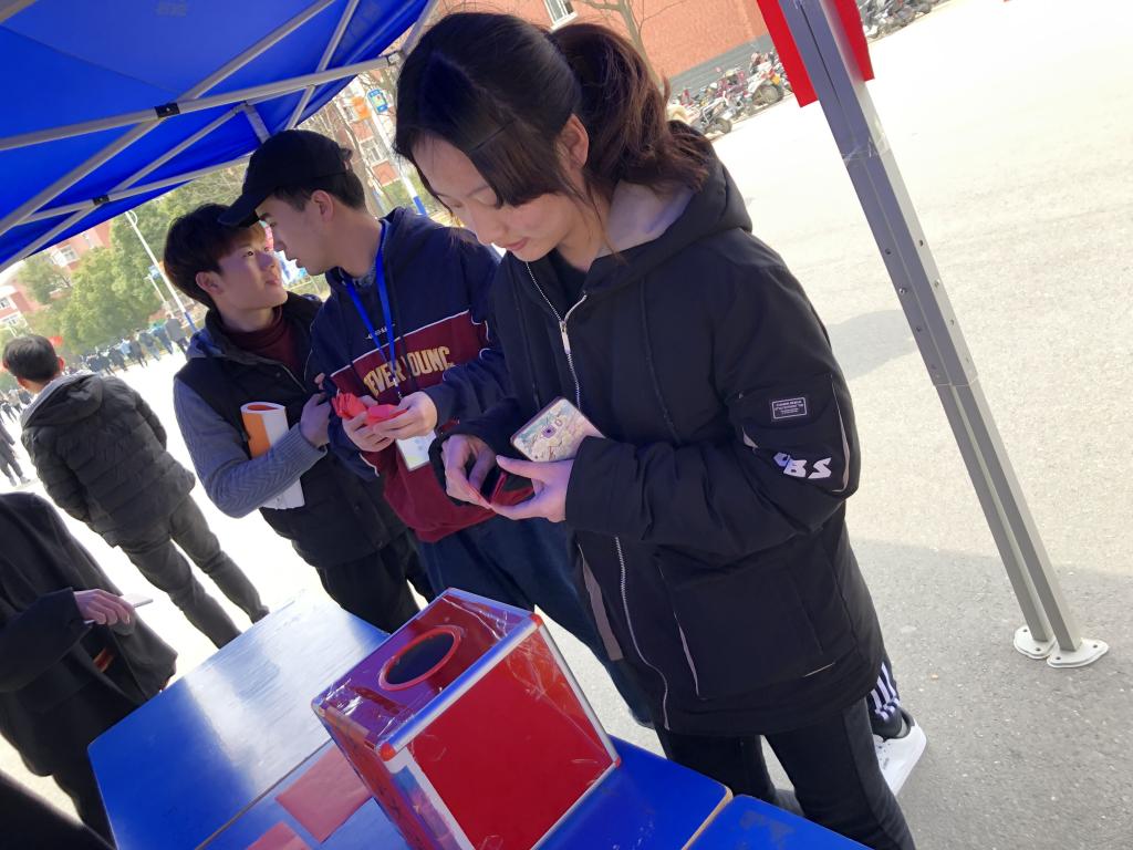 活动开始前,学生会成员在女生宿舍一号楼前搭趣味抽奖棚,准备抽奖箱,并设定抽奖幸运数。活动伊始,工作人员把女生引导进帐篷内,向女生介绍活动内容以及活动目的,随后就由女生在抽奖箱内抽取数字,若女生抽到数字407可以获得精美吊坠一个、抽到数字307可以获得布娃娃公仔一个、抽到数字37即可获得终极大奖蛋糕一份。经过一上午的抽奖,礼品陆陆续续都已送出,不少女生都收到了一份惊喜的节日祝福。
