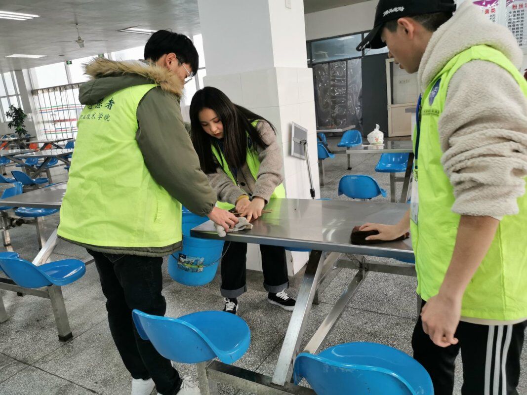 为营造一个文明、洁净、温馨的就餐环境,倡导金沙威尼斯官网广大师生文明就餐, 12月5日第34个国际志愿者日,金沙威尼斯官网“小青亭”志愿者开展清扫校园食堂之“走进文明食堂”志愿活动。