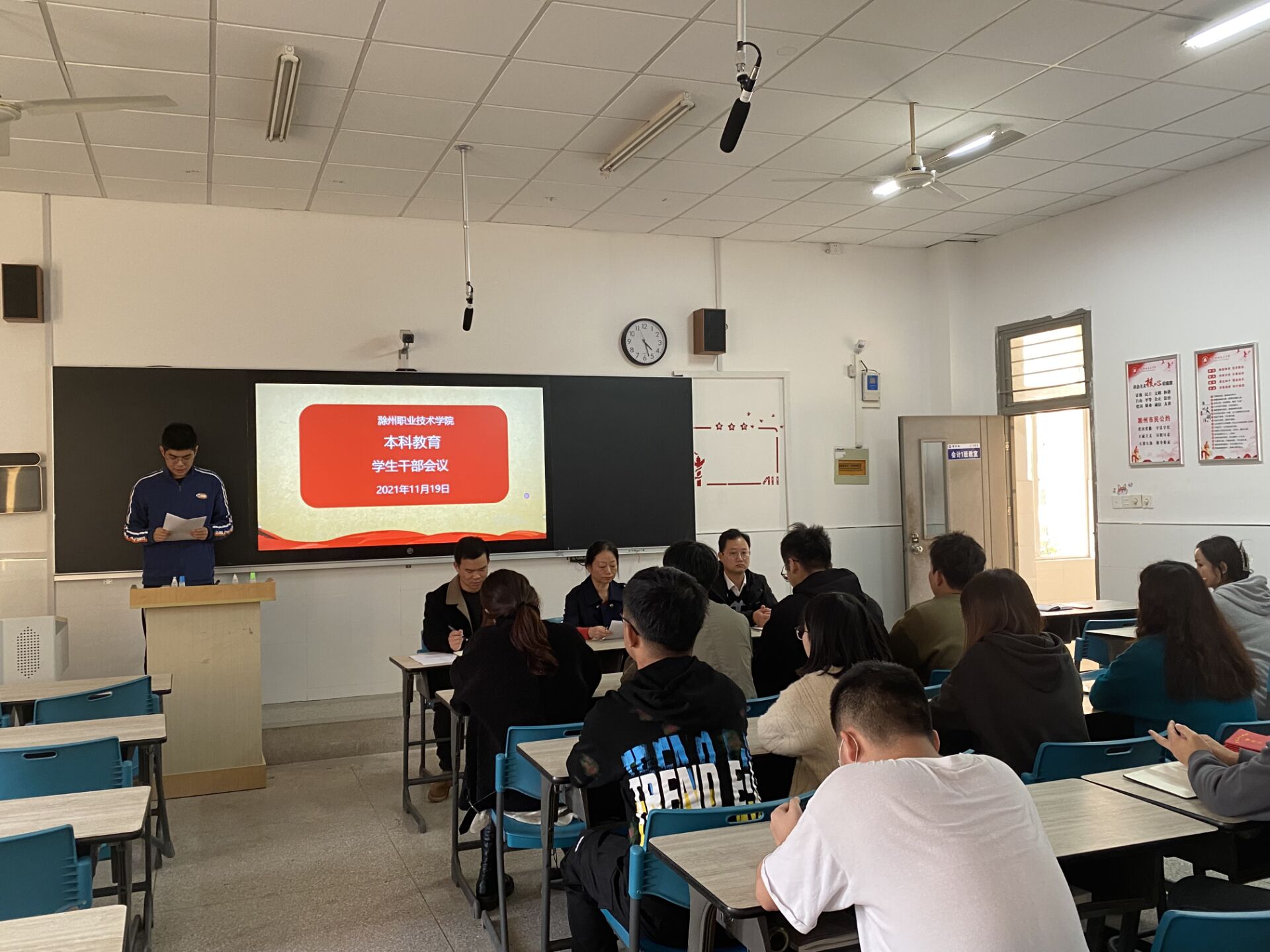 为充分发挥学生干部的积极作用,强化学生干部队伍建设,11月19日下午4点,本科教育首届学生干部会议在教学楼1301教室召开。学生处副处长薛天飞、辅导员杨付春、余道奎参加会议,此次会议由杨付春主持,各班班长、团支书和学生会全体成员参加会议。