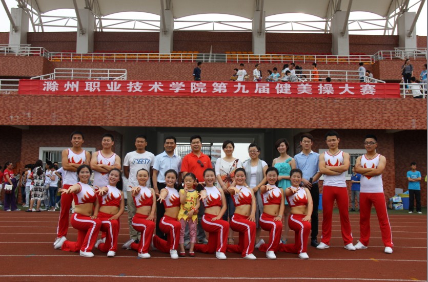 5月21日16:30,在学院新操场成功举办了“走下网络 走出宿舍 走向操场”系列活动之健美操大赛。院团委书记王蓓蓓、合肥太古可口可乐滁州分公司经理王志、院团委副书记刘杰、程诚、体育部健美操老师王厚红、院团委老师朱婷婷担任本次比赛的评委。