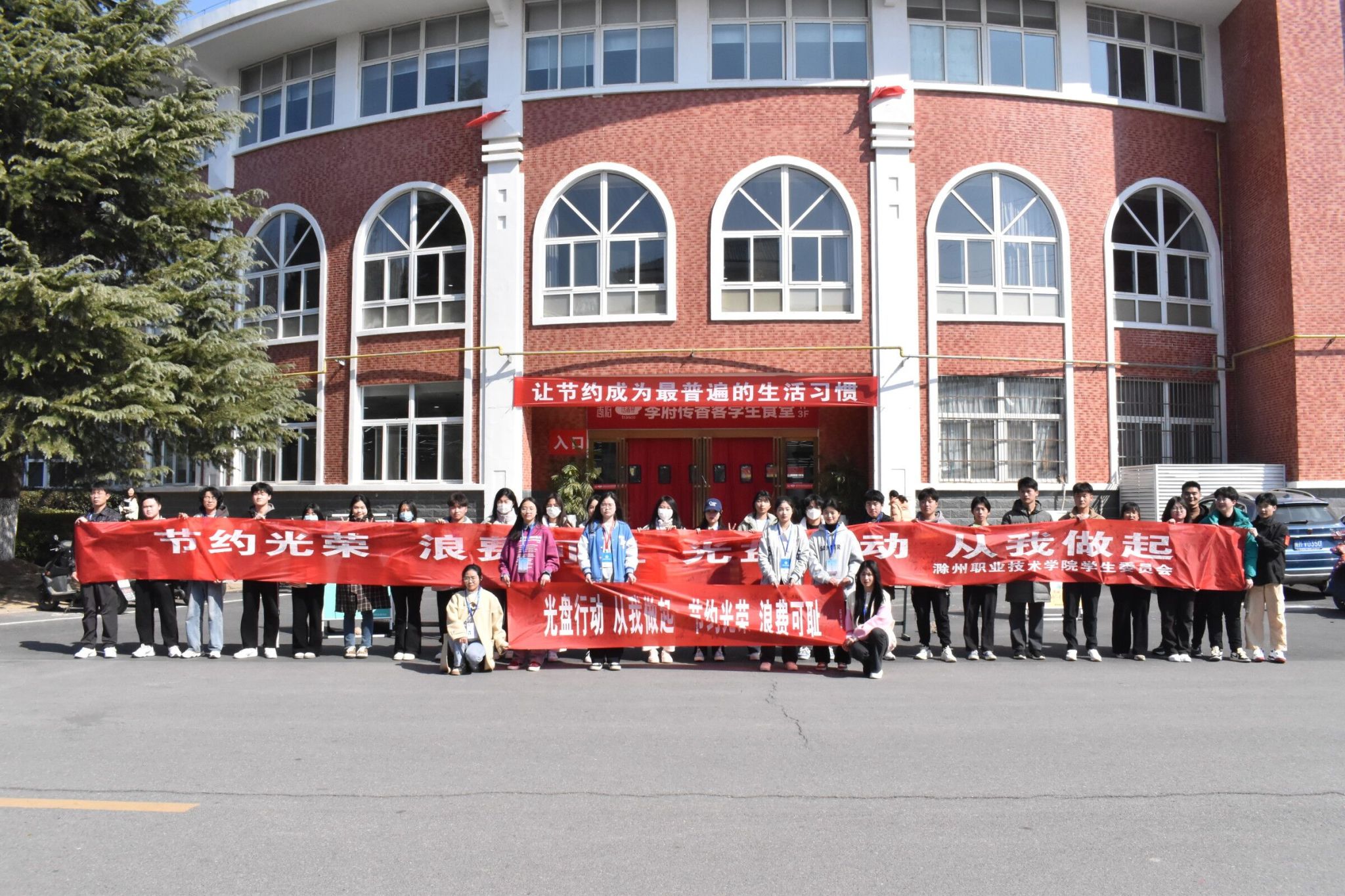 为大力弘扬中华民族勤俭节约的优良传统,宣传节约光荣、培养健康文明的餐饮文化,2月27日校学生会在食堂门口设立光盘行动宣传点,举办横幅签名活动。