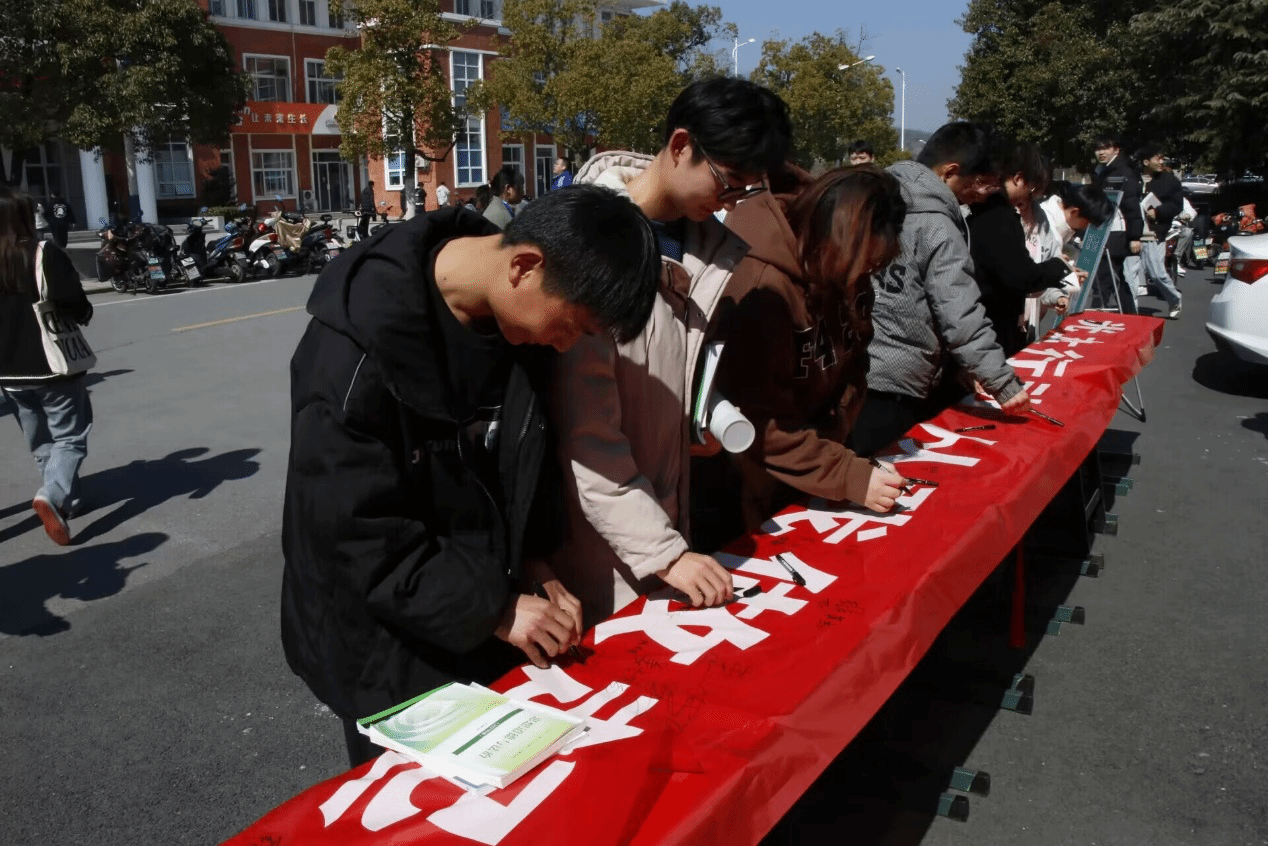 活动中,在校学生会同学纷纷向大家介绍我国餐食浪费情况,倡导大家节约粮食。全校师生积极响应,在“光盘行动 从我做起 节约光荣 浪费可耻”的横幅上郑重签名,纷纷表示会从点滴做起,将节粮成为自觉行动。