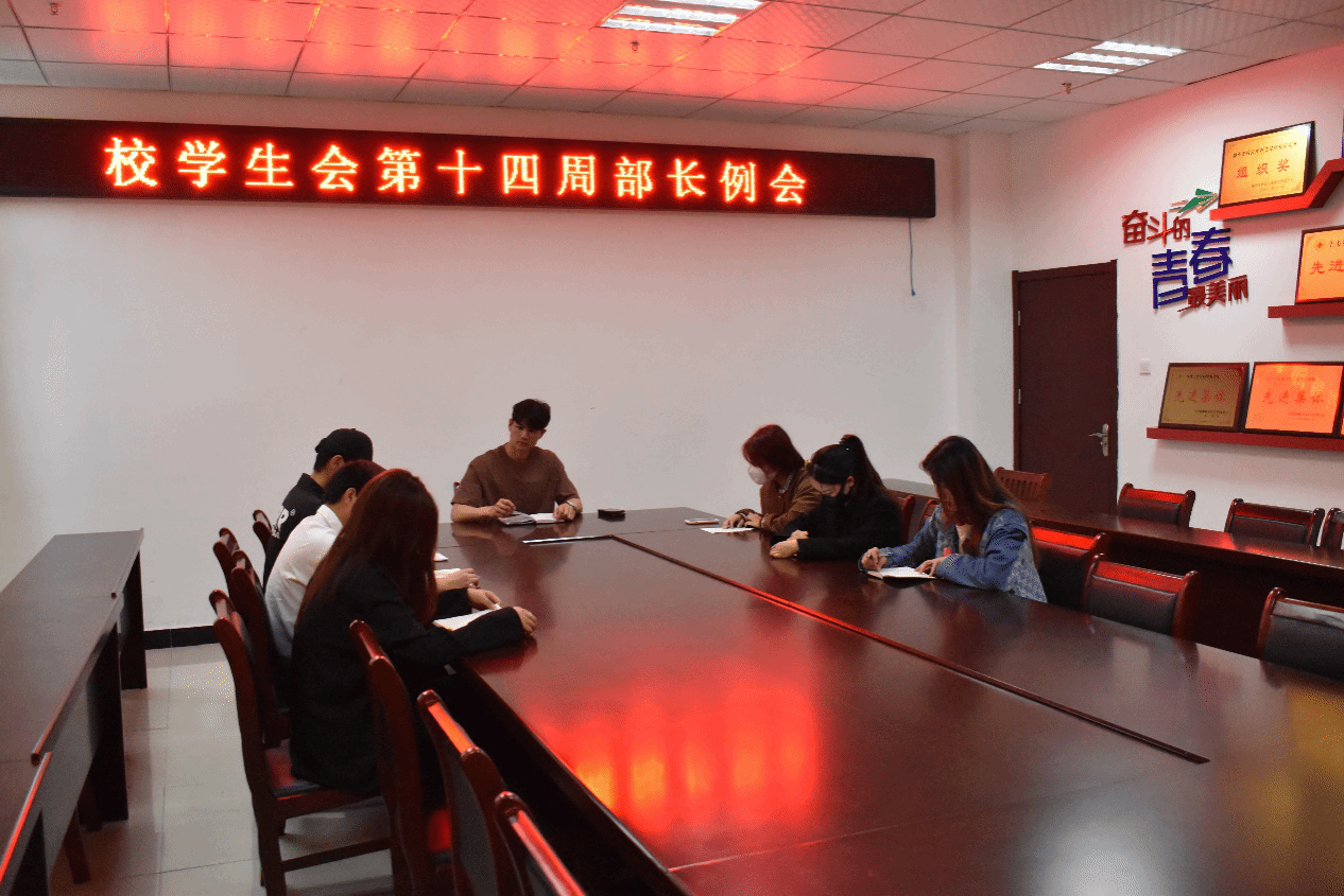 2023年5月7日,校学生会在大学生活动中心317召开了第十四周部长例会。会议由主席团成员路凯主持,各部门负责人参加。