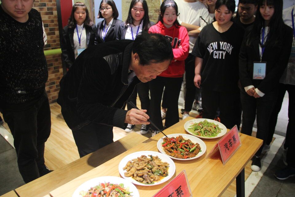 第六届美食节系列活动之“厨神入化”厨艺大比拼于4月18日下午在美食梦工厂二楼正式开赛,来自各系部的选手参与比拼,本次比赛邀请后勤主任胡永光、锦春厨师曹金伟担任大赛评委。