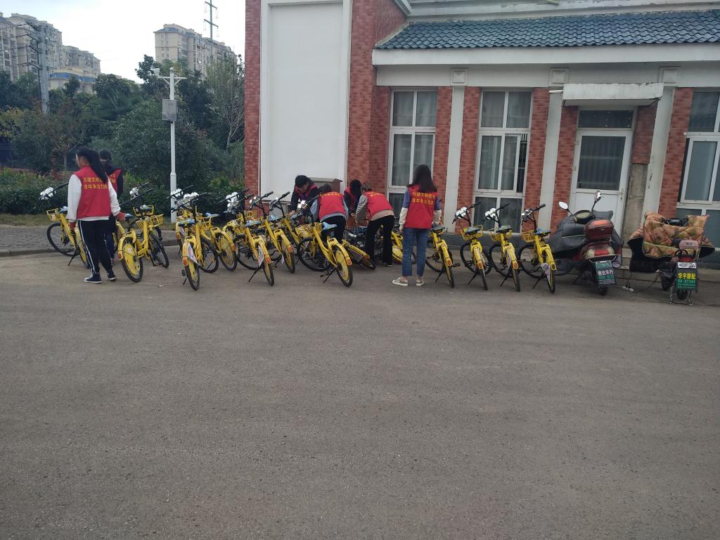活动过程中,志愿者们积极地将乱停乱放的共享单车及自行车推进指定停车地点停好,在将车辆摆放整齐后,志愿者们将停车场附近的垃圾清理干净,并劝导同学们将车辆按秩序停放。对于有损坏需要维修的车辆也进行集中摆放,方便后续修理人员处理。在志愿者的努力下,路边道路干净,共享单车也摆放的井然有序。市民在志愿者的劝导下,也自觉有序停放车辆。