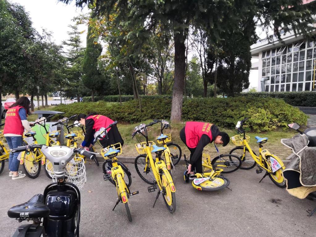 为了给全校师生营造一个良好的学习与生活环境,规范共享单车停车区的秩序,倡导文明风尚,金沙威尼斯官网“小青亭”志愿者于11月12日在校内宿舍停车区、教学楼停车区、食堂停车场区等地开展了整理共享单车的志愿服务活动。
