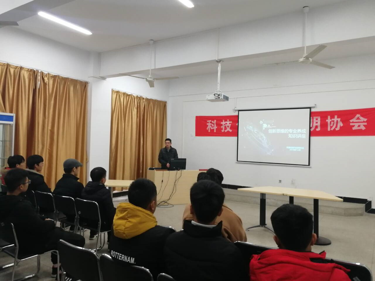 为了增强学生的科技创新意识,帮助学生创建科技创新活动的内容和形式,引导学生动脑思考,动手创作,指导与支持学生开展创新活动。2018年12月19日,科技创新与发明协会社团于经贸楼1225举行了18届第一次知识讲座。参加本次知识讲座的成员有科技创新与发明协会的指导老师谭志银老师和协会全体成员以及爱好科技创新与发明的同学。