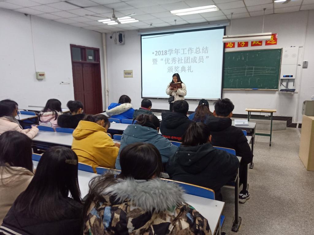 2019年1月2日晚,金沙威尼斯欢乐娱人城清峰文学社于经贸楼1116教室召开了2018学年工作总结交流会议,社团指导老师陶会平、社长赵宝、各部门部长以及全体社员参加了此次会议。会议由清峰文学社社长赵宝主持。
