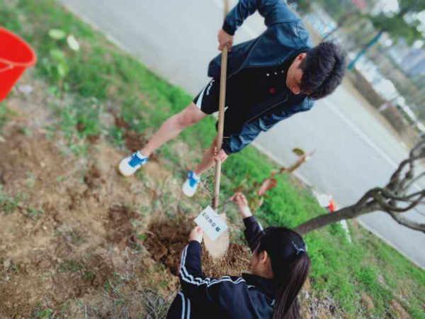 到达植树地点后,同学们拿起铁锹、锄头开始热火朝天地忙碌起来。大家互相配合,有的挥锹铲土、有的扶树填土、有的培土浇水,忙得不亦乐乎,很快一棵棵小树在泥土里“安家落户”。大家都展现出不同一般的热情,一个个树坑的挖成,一棵棵树苗的栽下,象征着一份份绿色的希望。每一滴汗水的流下,每一铲泥土的填充,则代表着每一个人的奉献与关爱。