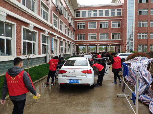 飘扬的旗帜、闪耀的青春。汽车协会发挥“服务全院、服务职工”的作用,志愿者们用雷锋精神作激励,热情高昂,合作默契,共计清洗车二十辆左右,其中给部分车辆义务打蜡。活动前后共三个小时,下午五点结束后,汽车协会全体干事对其活动场地进行打扫,并为辛苦劳动一下午的志愿者们颁发了奖状,忙碌而充实的洗车活动在夕阳余晖结束了,但雷锋精神却永远铭记在心中。