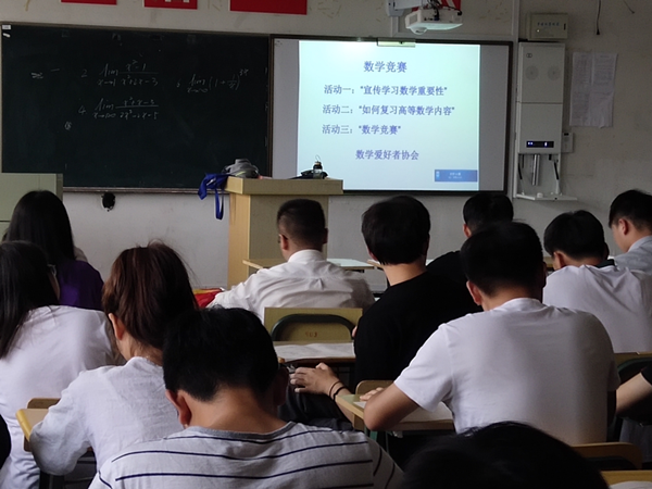 为了激发学生学习数学的兴趣,启迪学生思维,培养数学探索精神,提高实践能力,丰富校园文化生活,5月13日下午14:00数学爱好者协会在2502教室举办了“数学竞赛”。参加本次活动的人员有黄金超老师以及数学爱好者协会全体社员。