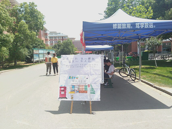 活动期间虽然烈日炎炎,但在摆摊的过程中,心协全体成员大力的宣传、积极的介绍本次活动,使此次活动得到了同学们广泛的关注和支持,同学们纷纷来稿以实际行动表达对活动的支持。本次除了心协全体成员对这次活动贡献出属于自己的力量,我院心理咨询师程诚老师也为同学们做了很多帮助,通过同学们写的信对同学们遇到的烦恼认真分析并回复来信,帮助同学们缓解忧愁和烦恼。