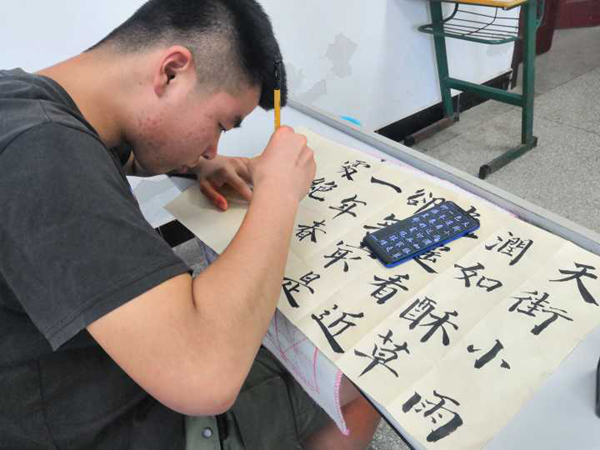 书法是我国悠久的传统文化艺术,为传承并弘扬这一优秀的传统文化艺术,5月29日下午1点30,金沙威尼斯官网书法协会在1101教室举办了“感悟青春,笔墨映夏”的书法比赛。本次活动共有40名同学参赛。