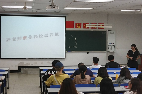 齐老师在对英语方面有独特的造诣,本次讲座主要是老师给同学们分享英语四级考试中的一些技巧,注意事项以及如何面临即将到来的四六级考试。同时老师还告诉同学们学习英语要有耐心,要沉住气,心平气和,坦然面对。在场的每一位同学都全神贯注的听着,老师和同学们积极的互动带动了整场讲座的气氛,最后在经久不息的掌声中结束了本次讲座。